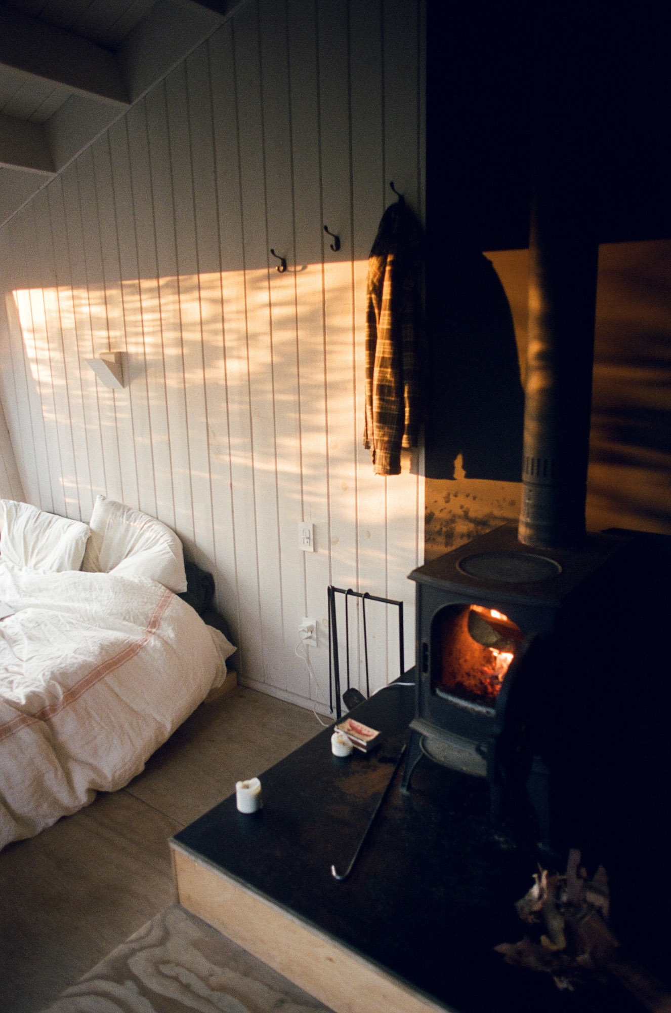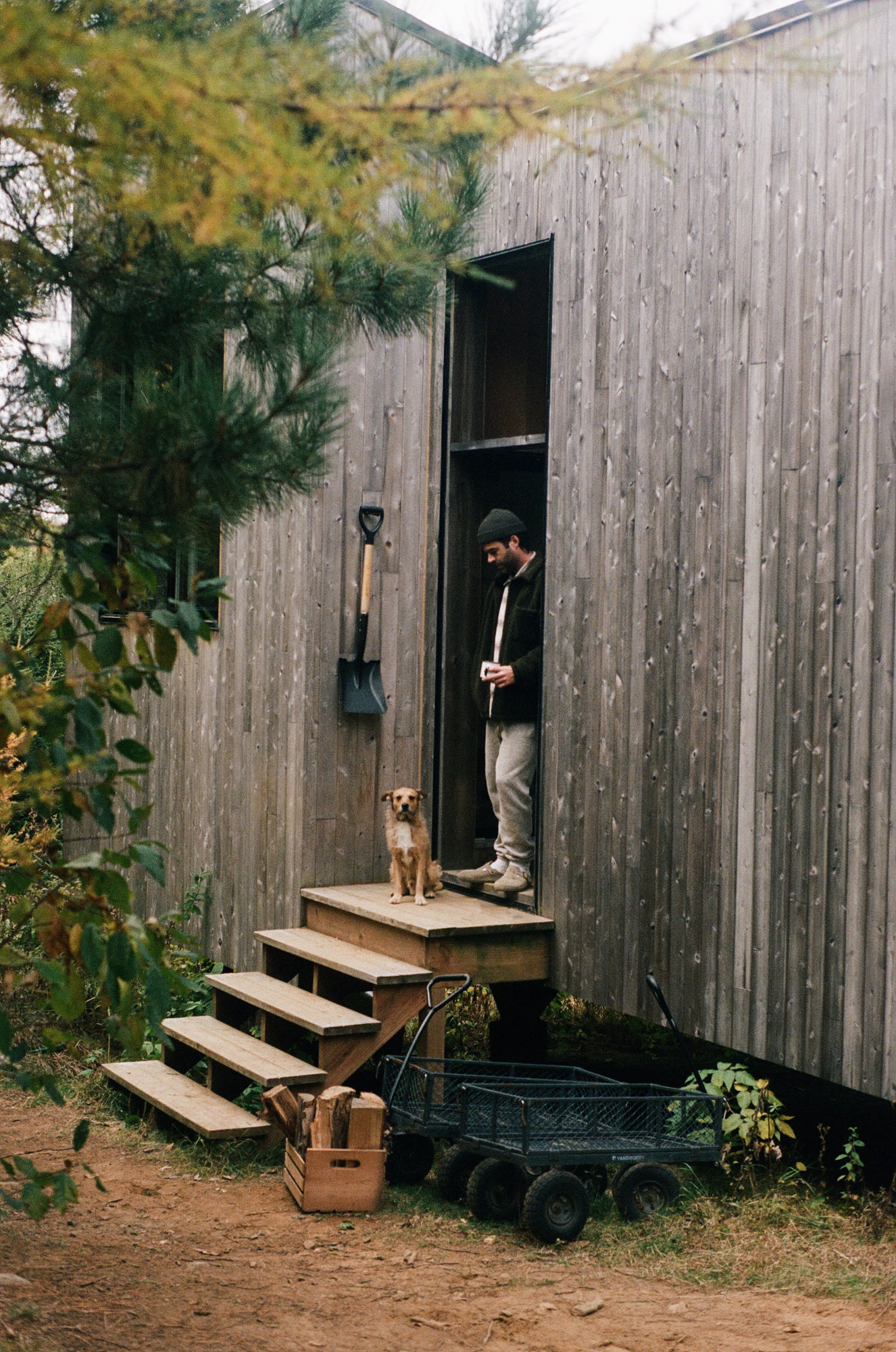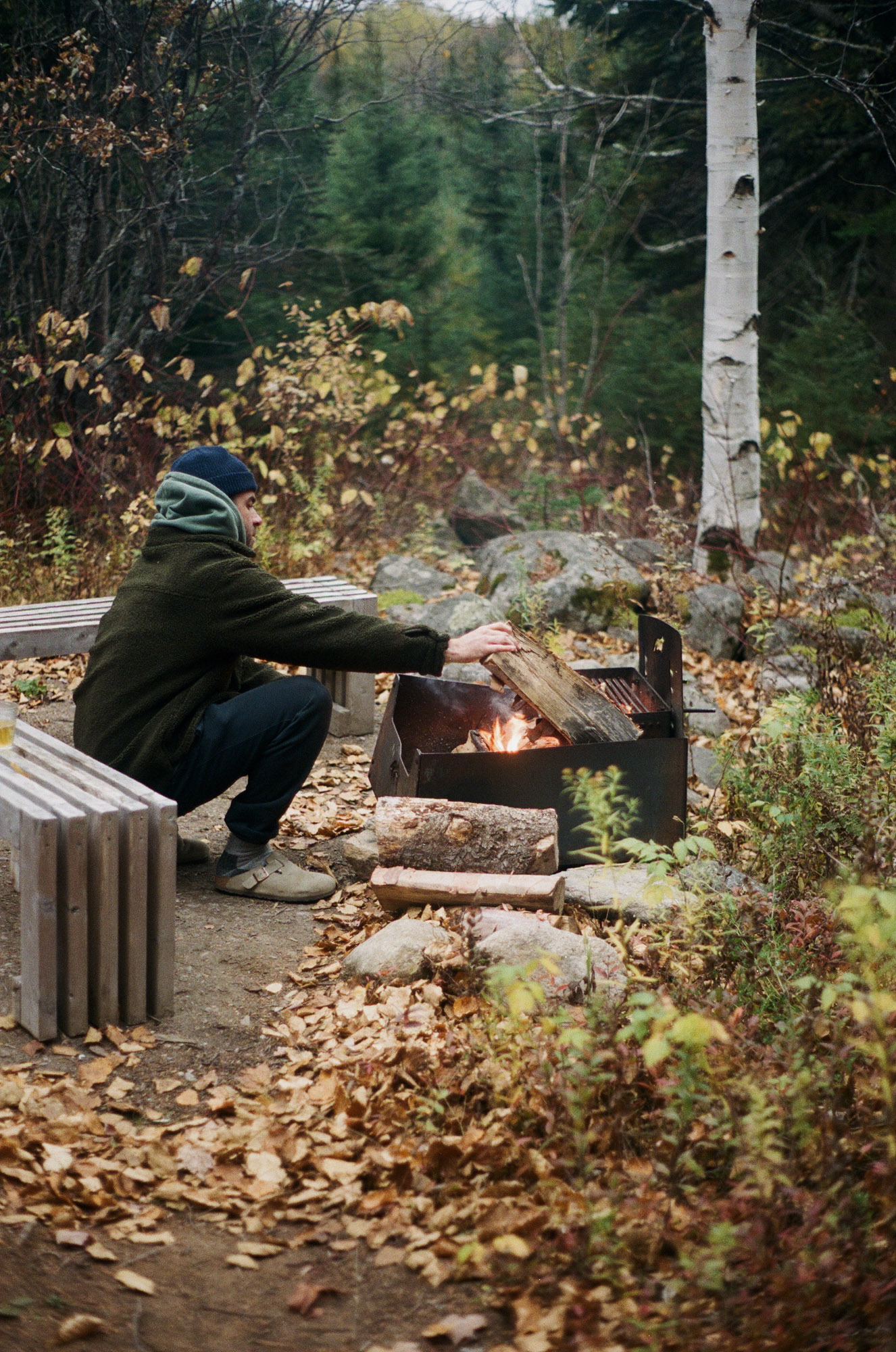 Dès qu’il en a l’occasion, Geoffroy s’évade dans le bois pour faire des feux, jouer de la guitare ou juste, s'en remettre au silence. Son séjour à Territoire Charlevoix incarne parfaitement ce genre de parenthèses. Dans ce petit refuge perché à flanc de montagne, le temps ralentit, le regard porte plus loin et les idées, parfois, viennent. C’est d’ailleurs là, près de la nature et loin des distractions qu’il aime finir ses projets, ou affiner tout ce qui peut l’être en dehors du studio.