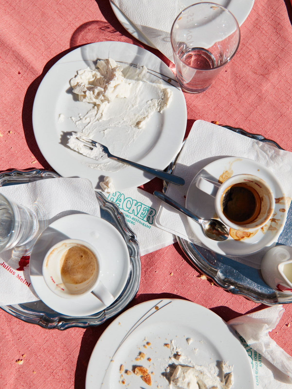 Art de la table. Inherent ephemerality. The cooking, the setting, knowing that it is destined to be enjoyed and then to disappear. A table. Colours, flavours, and the aftermath. Food eaten, glasses emptied, candles burned. The imperfections of the traces left behind.