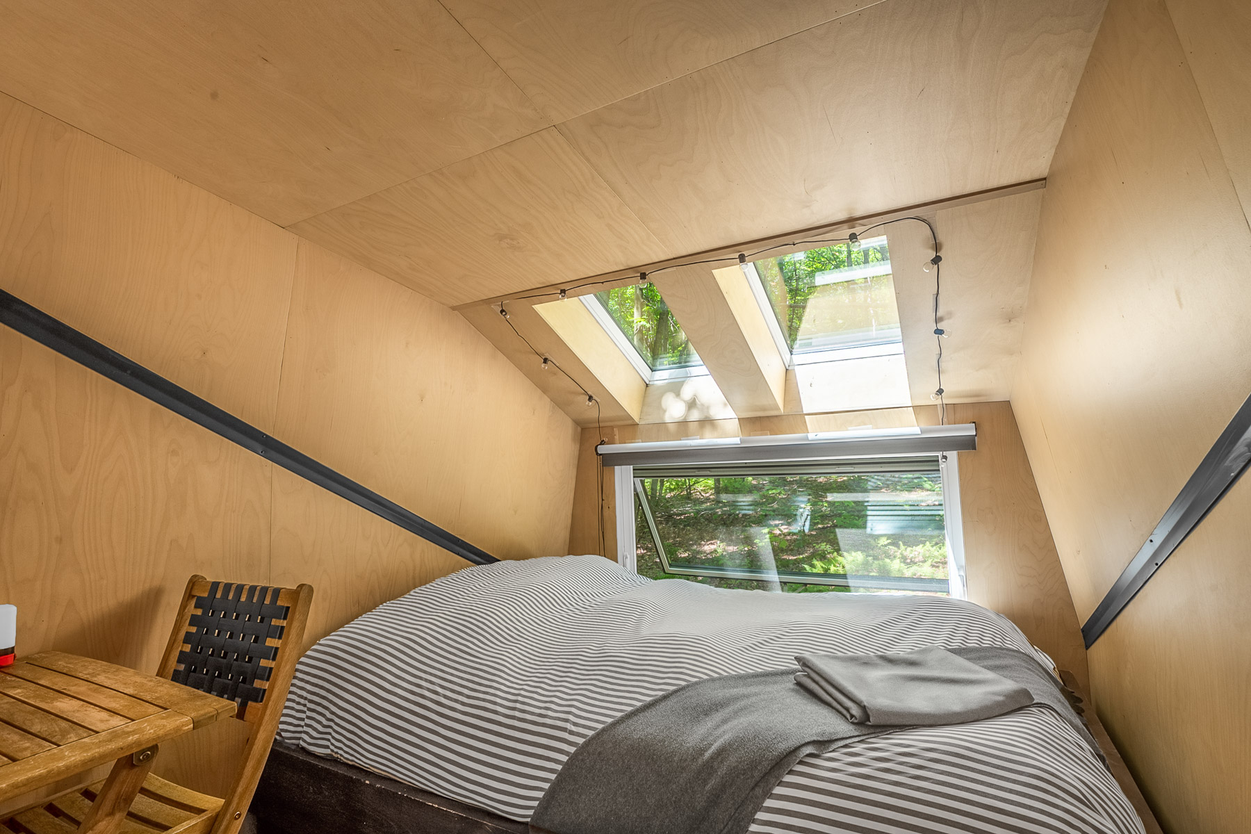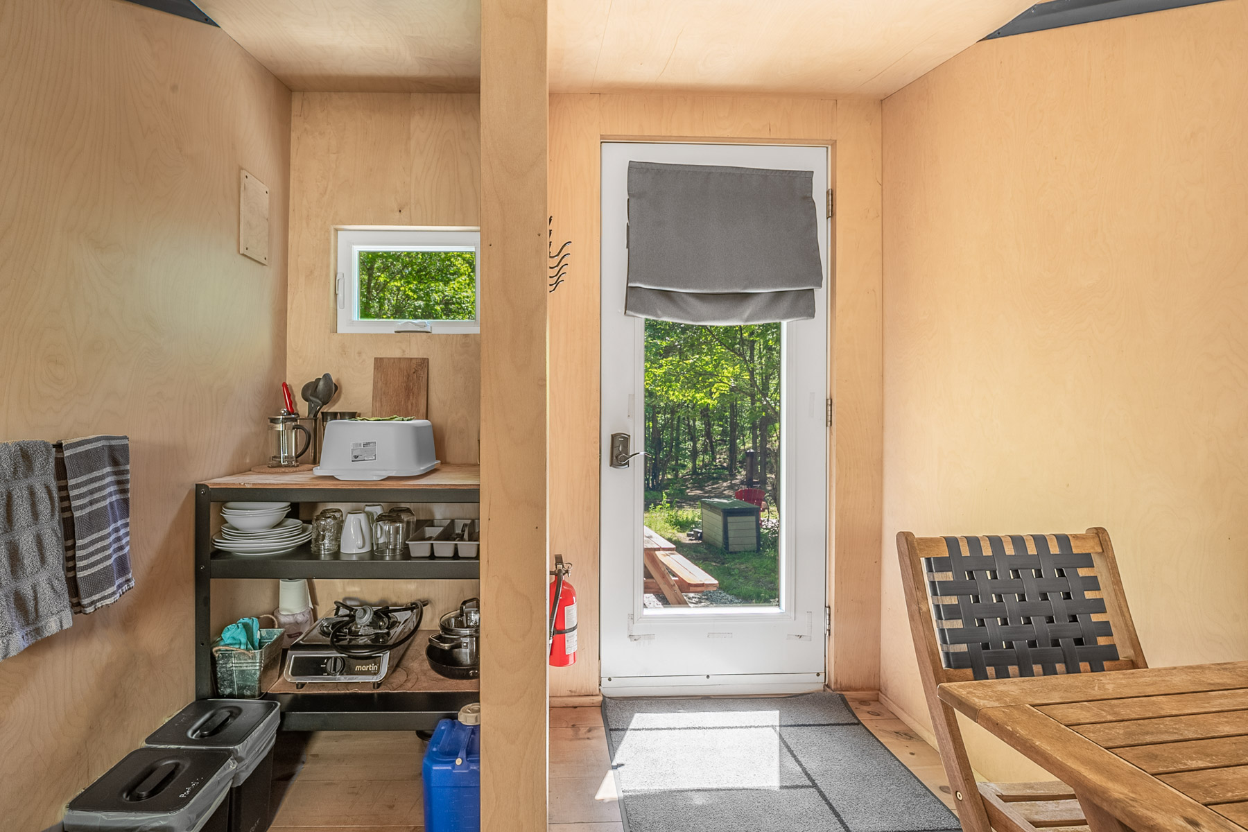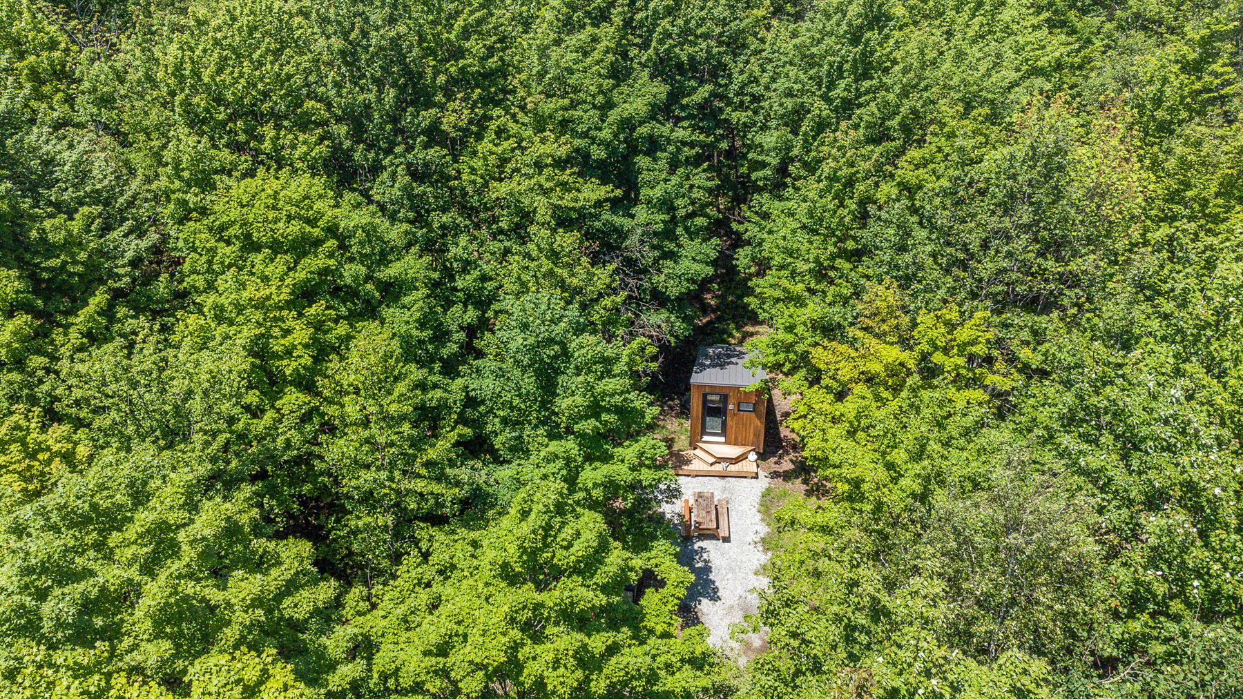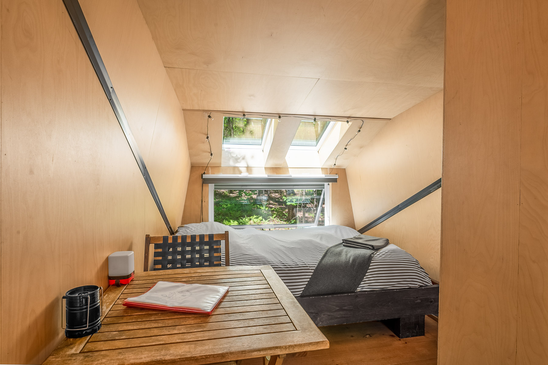 Depuis notre plus petit refuge, le ciel étoilé et l’étang se dévoilent à travers les arbres. Un espace compact et chaleureux, pensé pour s’ancrer dans le rythme de la nature.