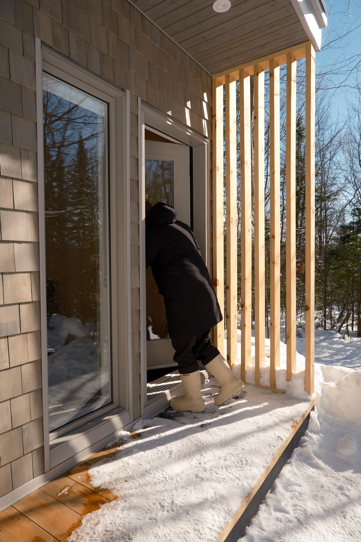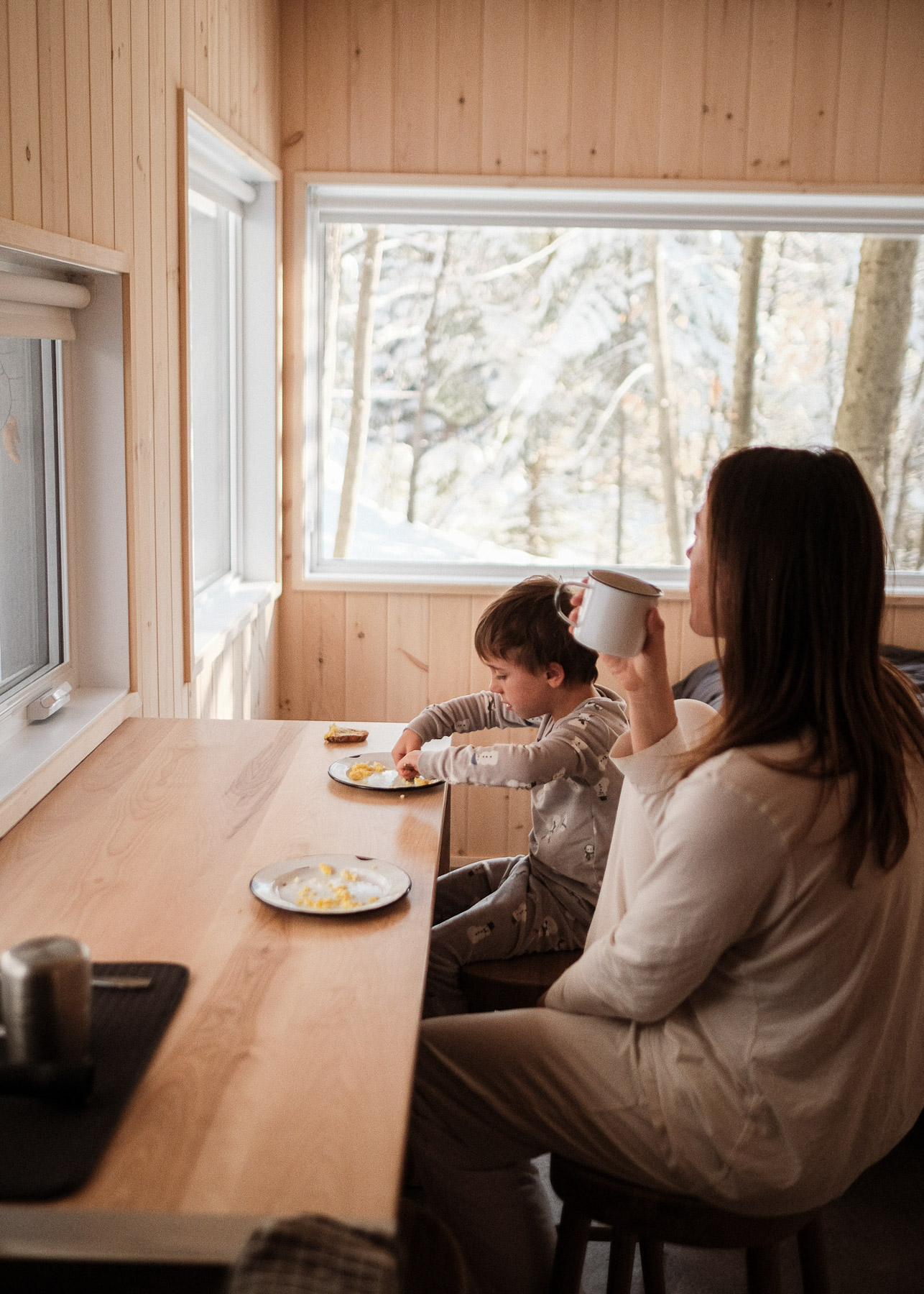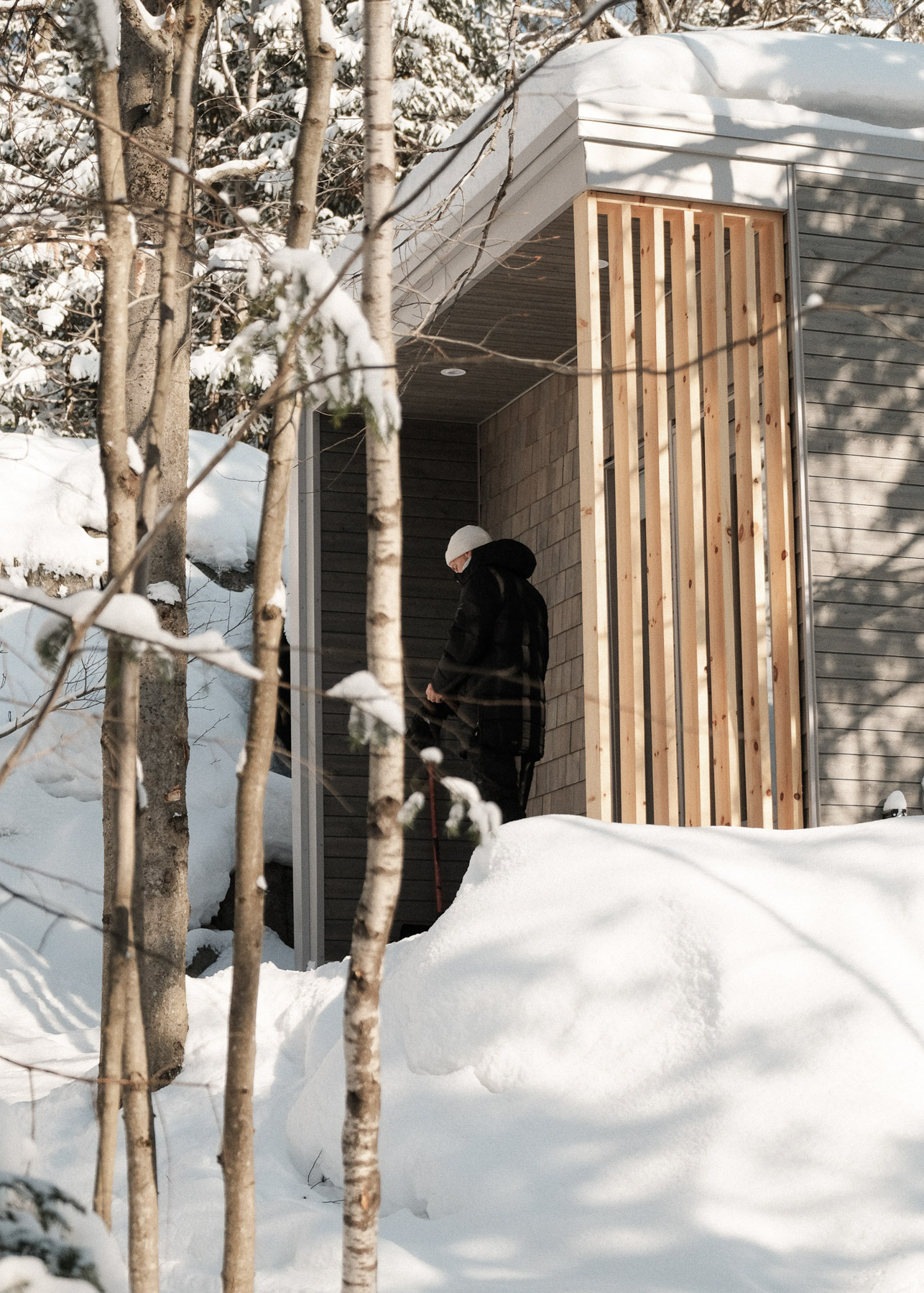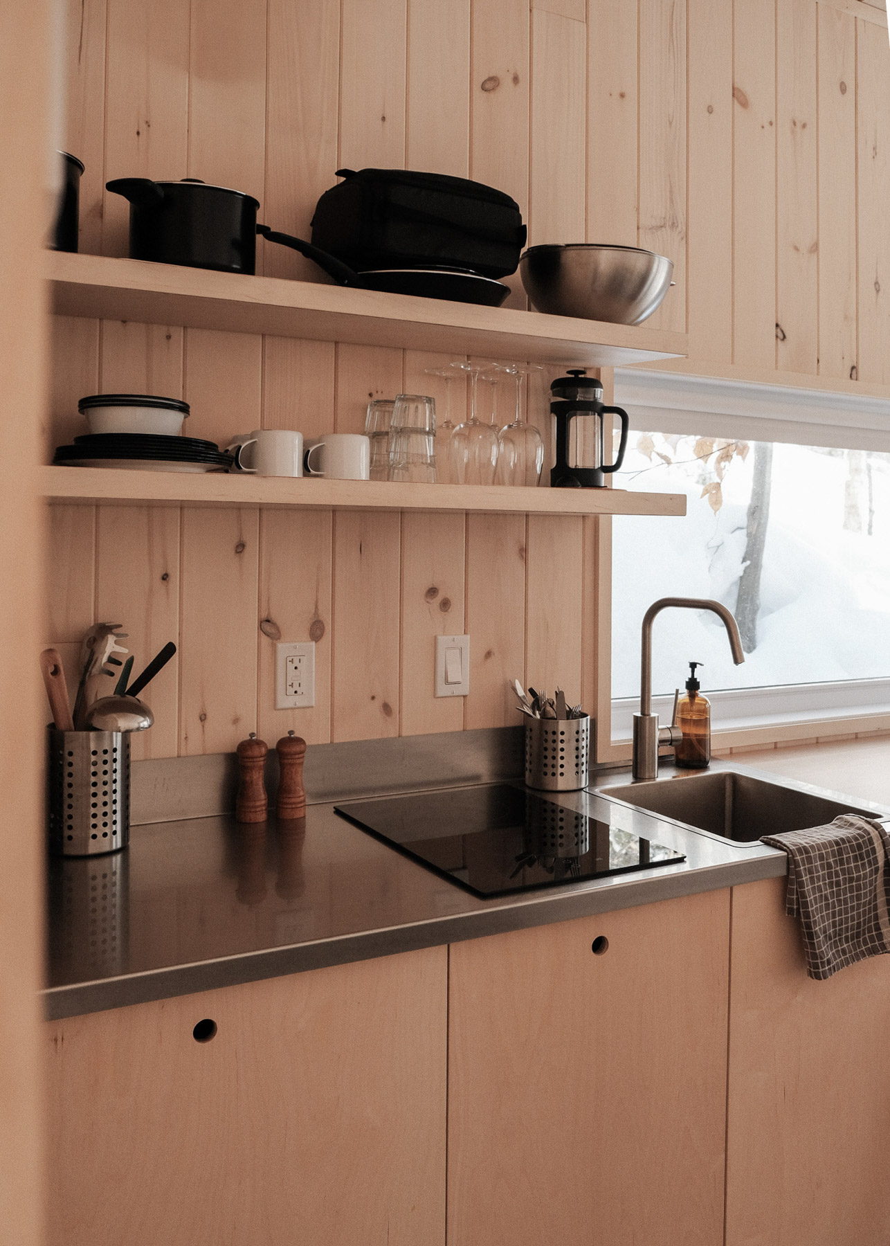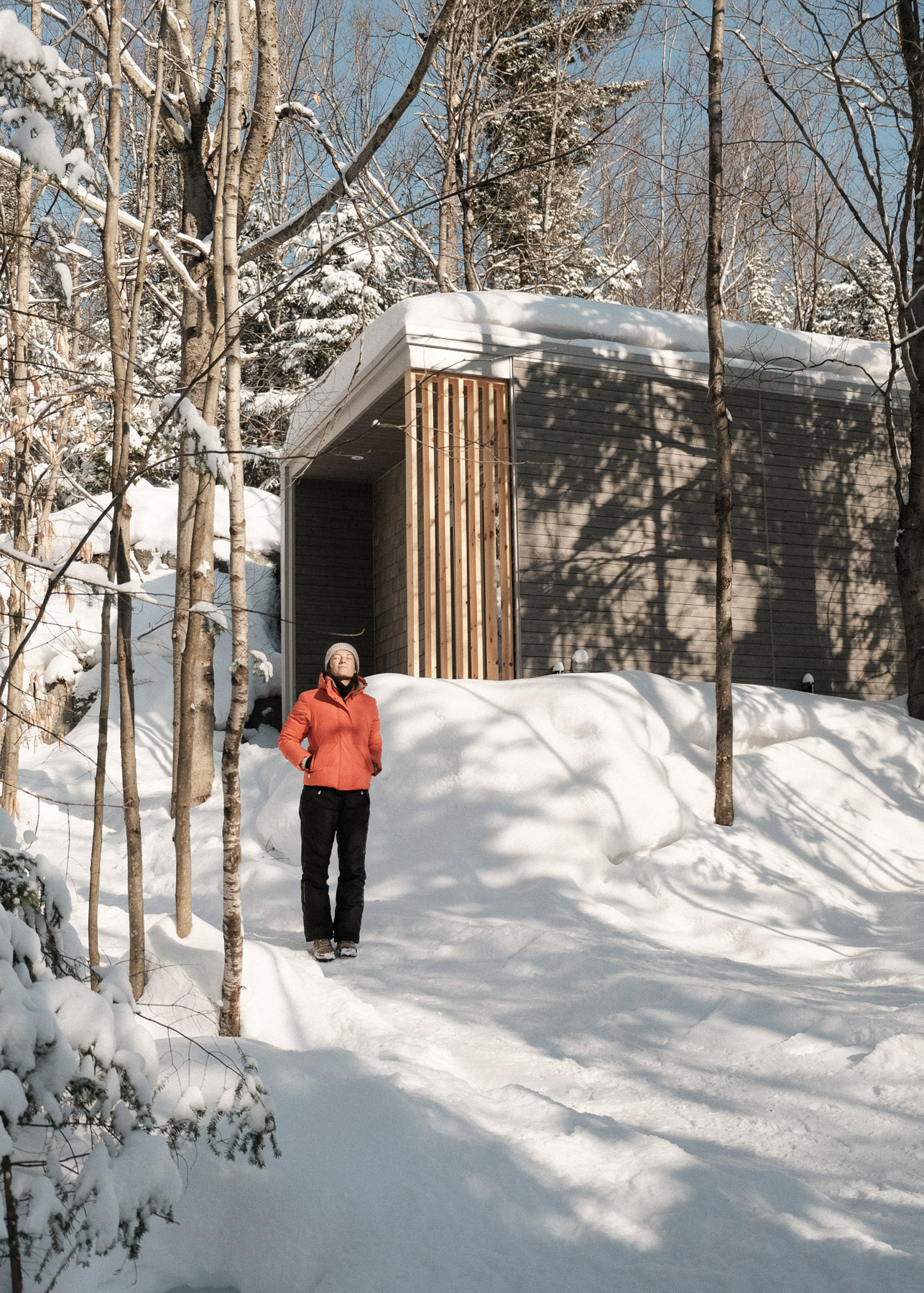 En lisière de forêt, l'Orée déploie un espace lumineux où la nature s'invite par de larges baies vitrées. Ce mini-chalet polyvalent accueille deux à quatre personnes dans une atmosphère épurée, où le bois blond réchauffe chaque recoin.